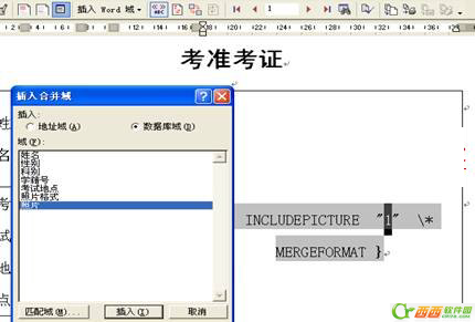 单击刚才插入的“域”──“shift”键 +“F9”键──选择“1”点击“插入合并域”──插入“相片”──点击“合并到新文档”──“确定”──单击“保存”(在主文档同一目录下)──按“ctrl+A” 键全选──按“F9”。在同一页纸中出现了多个准考证。