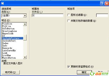 先把光标定位在要插入照片的地方,单击“插入”──“域”──在“域名”处选择“Includepicture”—在“域属性”文件名中,为了方便起见填入任意字符,比如“1”──单击确定。如图:
