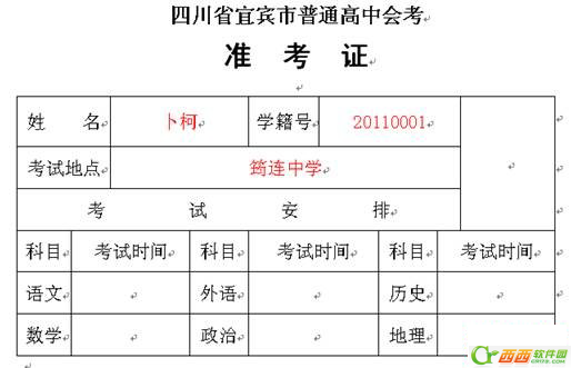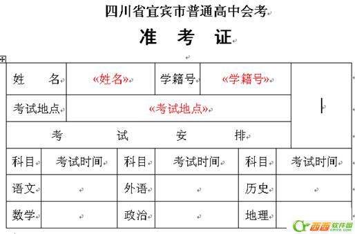 四、利用Word邮件合并功能将Excel数据、照片合并到word模板《四川省宜宾市普通高中会考准考证》中。步骤如下: