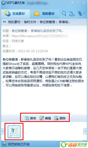 点击“素材库”素材列表中相应的素材,可以得到该素材的详细内容。