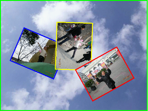 运用缩放、旋转手段将相片随意摆放,调整版式以便于组合,得到如下效果。
