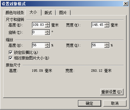 依次选择“设置对象格式”→“大小”→“重新设置”,输入缩放百分比,或修改“高度”,即可自由缩放图片。