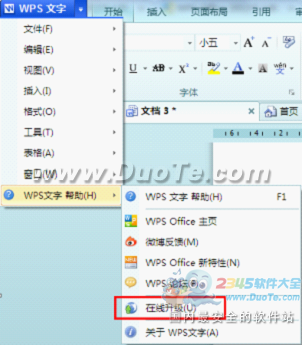 2012风格界面“在线升级”位置(点击“WPS文字”右边箭头向下的小按钮)