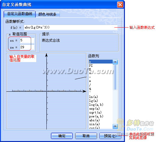 贴心提示:如果函数为您不太熟悉的函数时,建议您使用自定义函数图像。这样只要函数表达式输入正确就可以了!