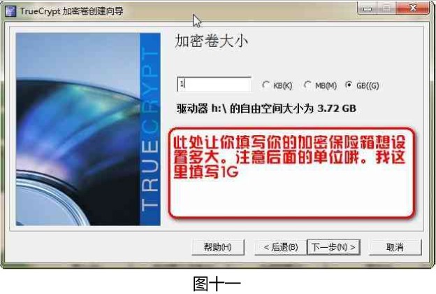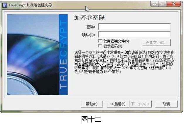 这一步让你设置加密卷(文件保险柜)的密码了,如图十二。