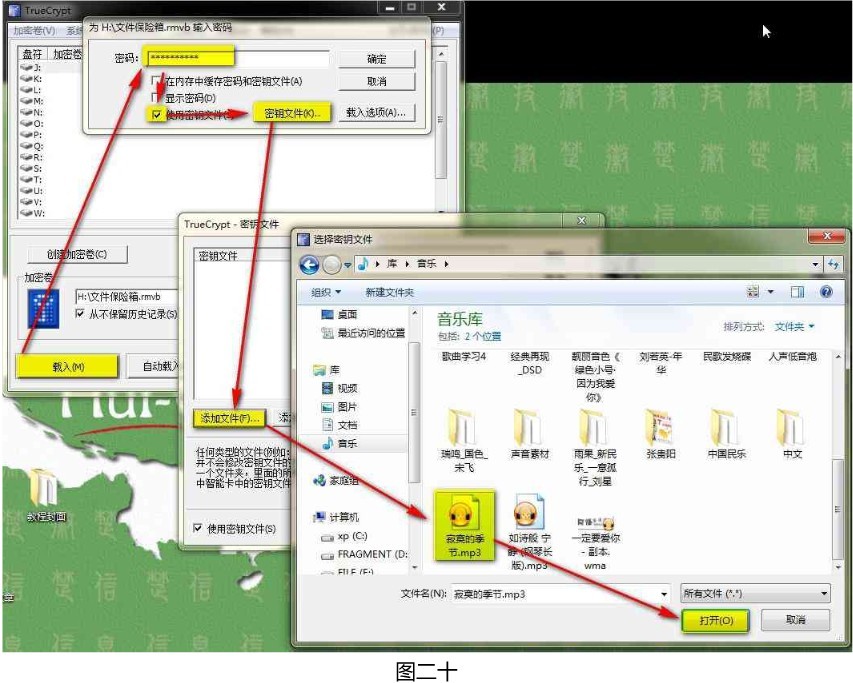 图十九 2、 点击载入后,要求你输入密码。如果你使用了文件作为密钥文件,则要求选中你的那个密钥文件,如图二十。