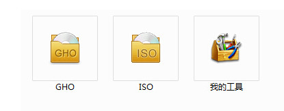 最后打开u盘,将会看到做好的u盘启动盘中会有着"GHO、ISO、我的工具"三个文件夹,如图所示: