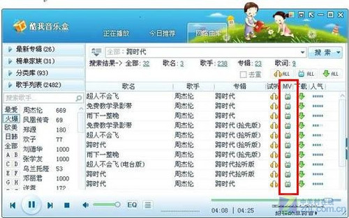 酷我音乐盒跨时代高清版MV抢先看: 听音乐还只是边听歌边看歌词吗,那你已经严重落伍了。现在听歌都流行看MV,听着美妙的音乐,看着明星卖力的演出,那感觉才叫一级棒。那