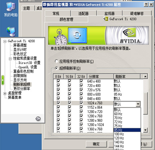 众所周知,在微软NT内核操作系统中,如果进行OpenGL游戏屏幕刷新率将会错误的保持在60Hz。自大家发现了Windows的这么Bug后,NV和ATi都在驱动中对这个Bug做出了相应的刷新率修正选项,但