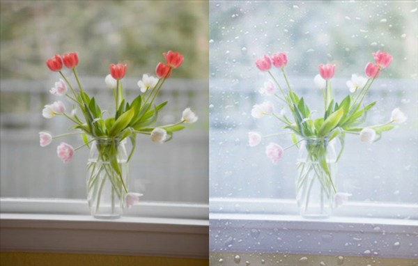 用美图秀秀软自制雨天滴水玻璃窗效果