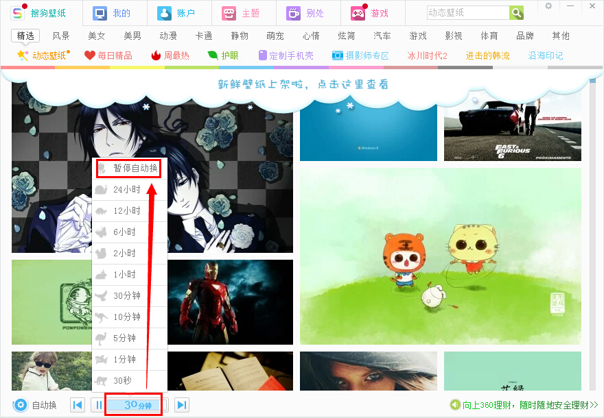 搜狗壁纸安装后就会自动给你的桌面更换壁纸并且还会隔多长时间自动更换壁纸,如果和小编一样不喜欢这个不自动换壁纸功能的话其实可以设置的,不会操作的同学可以来和小编