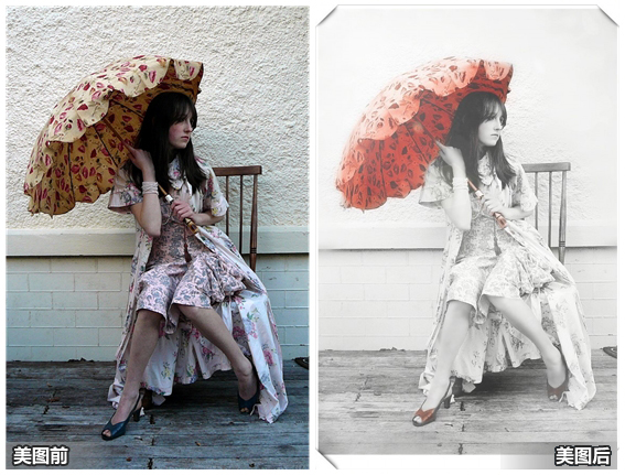 美图秀秀制作唯美的局部彩色效果“