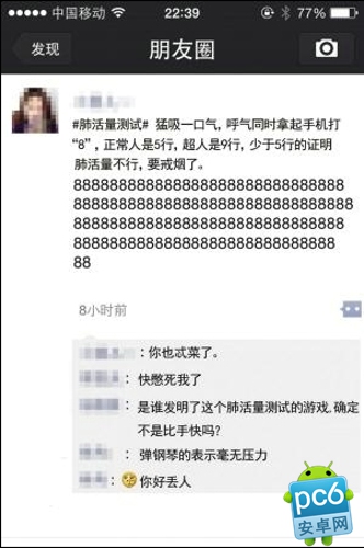 微信朋友圈输8是什么意思?怎么玩?小编最近发现自己的不少朋友在微信朋友圈中发了很多个8,这让小编很不解于是在网上寻找了下大概弄明白是什么意思了,下面和大家分享一下。微