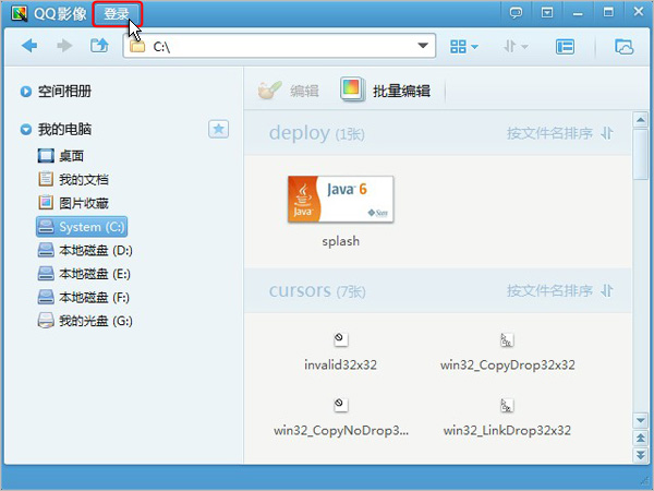 双击桌面QQ影像图标,打开程序,然后点击左上角登录按钮,如图: 弹出登录框之后输入QQ号码与密码,点击登录: 登录成功后在左上角会显示QQ昵称,并且空间相