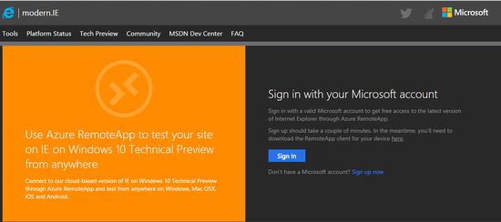 RemoteIE是微软为Web开发人员跨平台测试Web页面在IE中的效果而开发的,实际上就是在微软Azure虚拟机的远程桌面中使用IE浏览器。RemoteIE基于微软Azure,可以横跨苹果MAC、安卓手机、Windows、