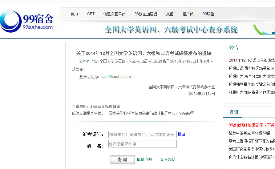 今天是英语出四六级成绩的日子,相信大家都很关注自己的四六级成绩。很多学校四级没过是不会颁发学位证书的,小编童鞋去年刚刚考了四级,今天要查询成绩,顺便把查询方法也分