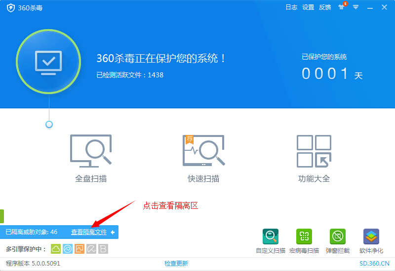 通常下载一个软件后如果有病毒,360杀毒会自动隔离,那么如果我们要把被隔离的文件恢复出来的话首先得找到360杀毒的隔离区在哪,新版360杀毒对于隔离区很好找,具体方法如下