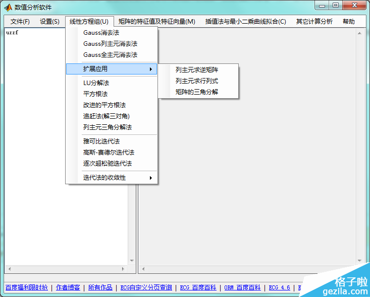 数值分析软件采用了友好的输入输出方案允许用户输入的随意性;利用了一定的图形处理技术,直观地显示数据具体信息,通过良好的数学方法与计算机技术的结合,保障数据的可靠性。
