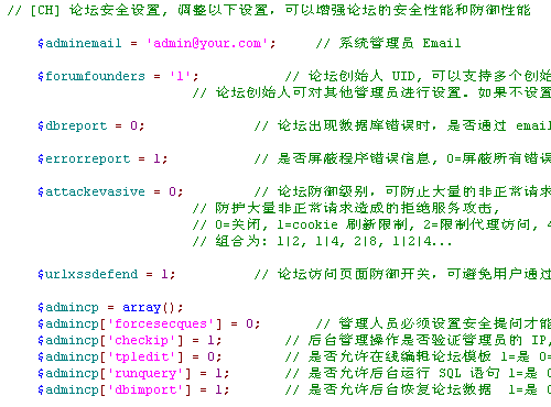 不同的站点对安全级别的要求不同,康盛创想(Comsenz)推出的Discuz!系统允许站点管理者,通过自定义配置文件中的config.inc.php中的论坛安全设置来自由调整站点的安全级别,同时也