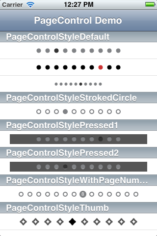 1、页面控制样式(包括形状、大小、颜色、文字)StyledPageControl代码名称:StyledPageControl授权协议:MIT代码描述:介绍:自定义PageControl各