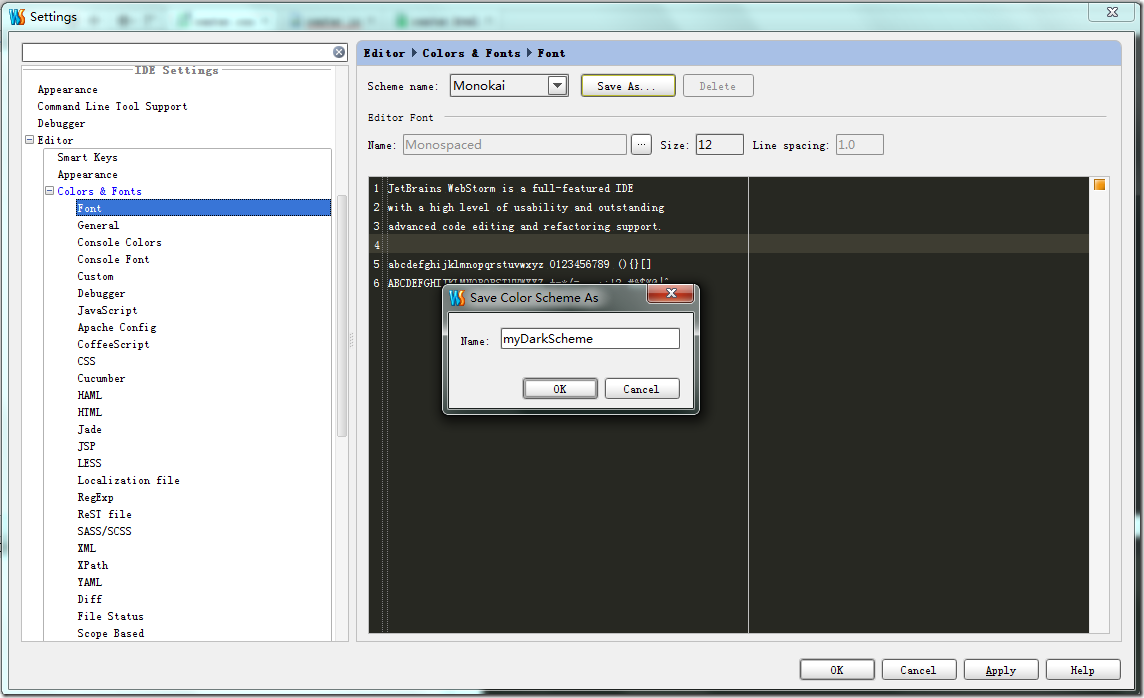 WebStorm自定义字体颜色语法高亮导入
