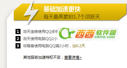 前往qq2015专题最新消息:QQ等级加速算法即将在2014年全新改版,目前腾讯已经发出相关公告,QQ的基础加速规则部分有很大的变化哦!按照新算法来看,每天最高可以累积1.7个QQ等级