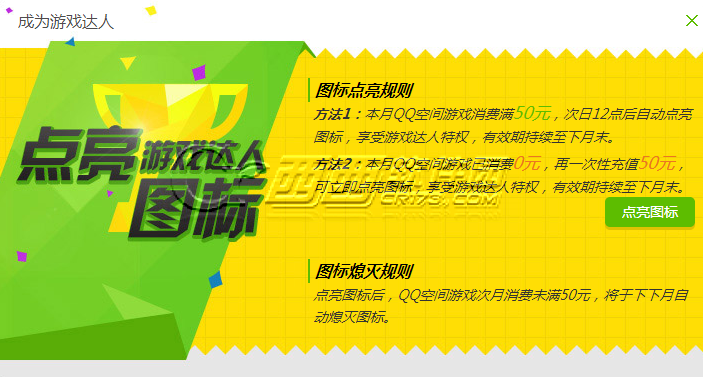 2014QQ游戏达人图标又出来圈钱了,但是对于土豪来说这是很划得来的,有了QQ游戏达人图标就可以领取各种游戏达人礼包啦,下边一起来看看最新的点亮方法吧!图标点亮规则:方法1: