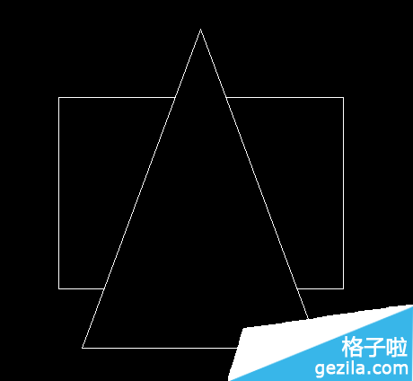2、采用wipeout命令就可以创建一个整体覆盖面。首先我向大家讲解一下WIPEOUT命令,WIPEOUT其实就是创建一整块面,用于遮盖其他图层,当然选择后置也可以被遮盖。现在我们用wipeout命令创建一个三角形的面来遮盖矩形,在命令栏中输入wipeout,回车,将三角形重新绘制一遍,完成如图所示。