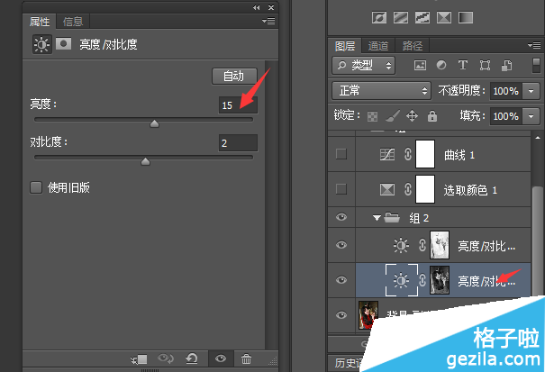 然后复制一层亮度对比度,按住Ctrl+I将其反相,再把暗部也提亮一些!