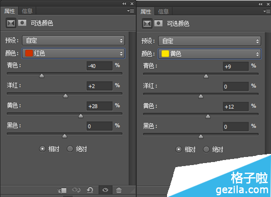 这时候我们新建一个可选颜色图层,调整红色和黄色,将画面的色彩调得更透更亮些!整体偏暖偏黄!