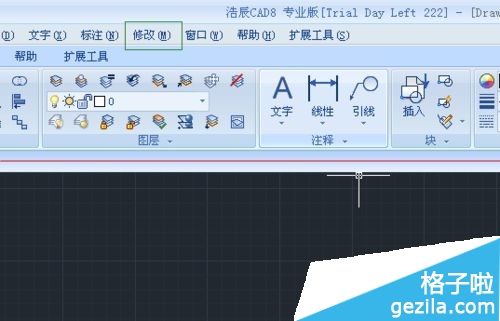 4、在较老的CAD版本的标题中,可以在标题栏中找到“修改”,里面就有个特性匹配