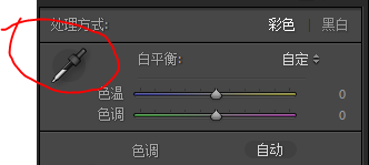 用白平衡选择器选择图中你觉得是黑色或者白色的区域,可以多选几次对比,我选的是这一区域。