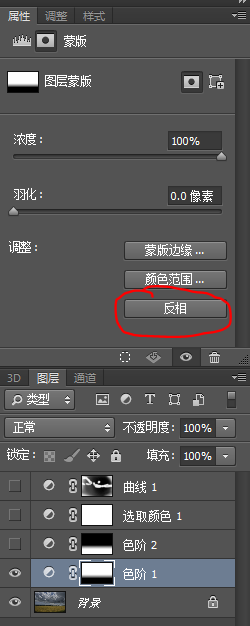 拷贝色阶1图层得到色阶2,然后反相,调节参数如图