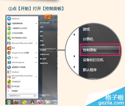 1、这里以win7为例,进入开始菜单栏,选择控制面板。