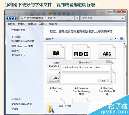 3、将一开始下载好的字体,拖拽或者复制到【字体】文件夹下。