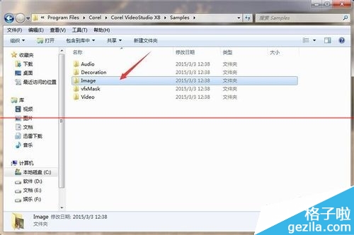 4、打开Samples文件夹后,找到Image文件夹,并双击打开这个文件夹。
