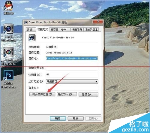 2、在打开的属性对话框中选择打开文件位置。