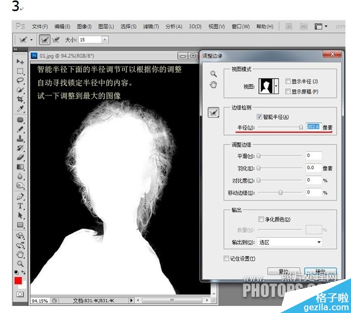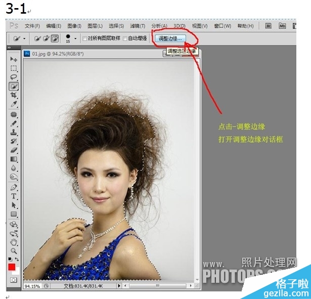 3.点击调整边缘