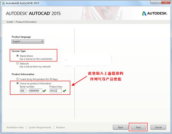4、选择许可证类型并输入产品信息,输入上面给大家提供的序列号及产品密匙