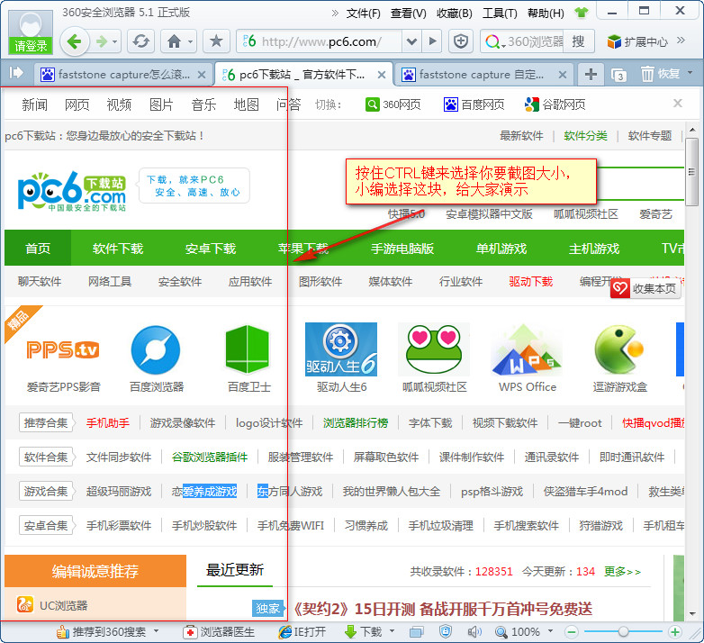 2、我们按住CTRL键来选择你要截图大小,然后就会出现一个红色的框框,我们点击向下的滚动条,截图完成点击回车。
