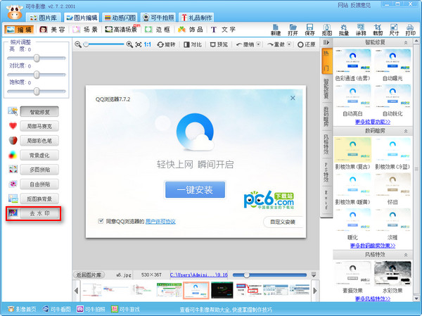 可牛影像怎么去水印?可牛影像是一款简单易用的图片处理软件,他处理图片的效果非常好,大家平时在一些网上下载图片,很多图片上都有自己网站的水印,用起来很不舒服,这时候一款非常好用的去水印软件是必不可少了,那怎么用可牛影像去水印呢?今天小编给大家推荐的就是可牛影像怎么去水印?有点多傻瓜式的操作,大家看好了哦!本人觉得效果还不错。