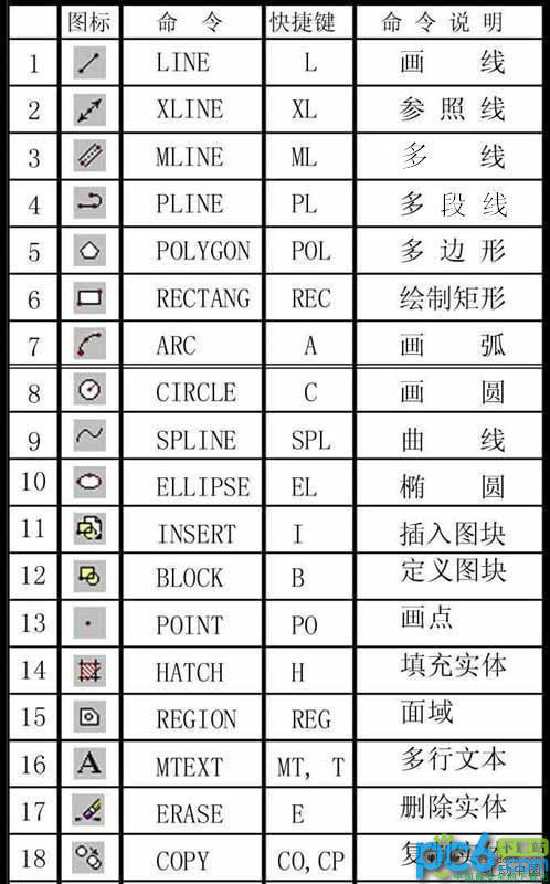 CAD常用的快捷键命令大全,主要包括快捷键命令的键盘操作和所对应的快捷命令,方便查找和使用,对cad初学者能够快速提高绘图速度。图文并茂,非常实用。