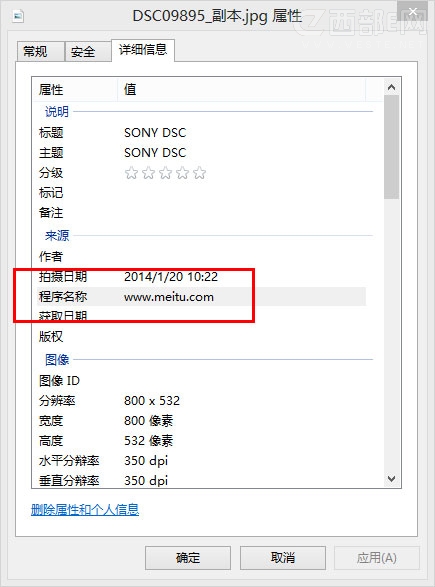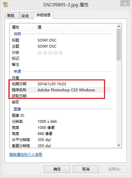 首先拿到照片,鼠标右键点击照片,在弹出的菜单中选择“属性”。然后选择“详细信息”选项卡,这里面会清楚的显示出照片用什么型号的相机拍摄、分辨率、光圈、ISO速度、焦距等信息。如果使用的作图软件处理,比如Photoshop,就能在“来源 > 程序名称”下清楚的看到修图的软件程序。