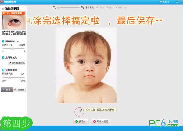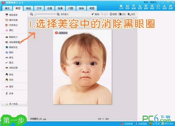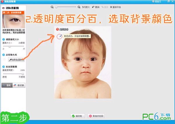 第一种方法:可以使用美容中的消除黑眼圈选取背景颜色进行来涂抹掉,原图取水印旁边的颜色块,透明度调整成不透明状态,然后去涂抹水印,让水印跟周围颜色相同