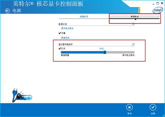 电池模式,多了显示器节电技术,可以根据使用习惯选择对应模式,如图: