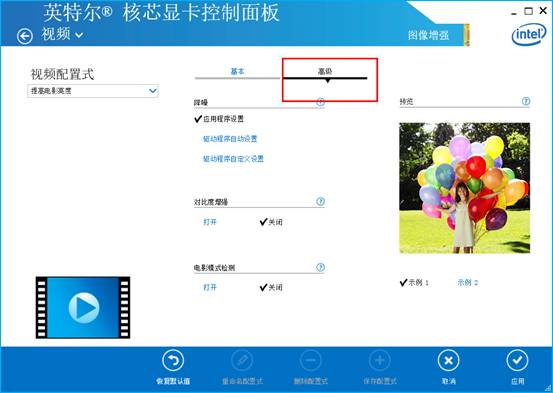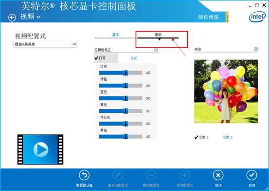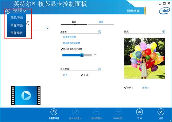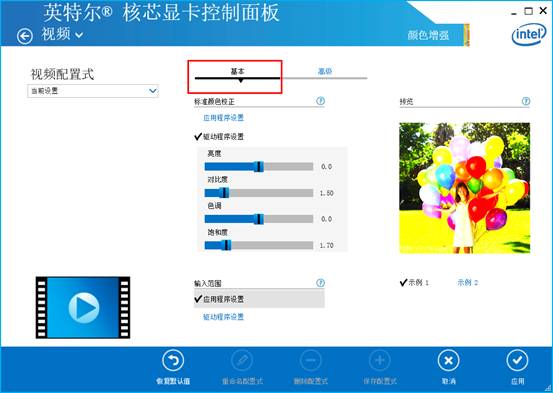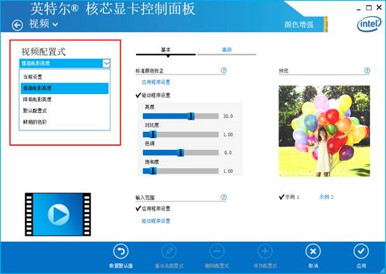 4. 视频界面,打开默认为颜色增强(基本)模式,里面可以如图: