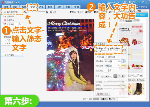 6、最后选择“输入静态文字”选项,将关于圣诞的文字内容添加在照片上,这样就大功告成啦!