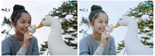 此次“人像特效”中比较受女生青睐的可以说是“甜美可人”特效,可爱乖巧的特效效果加上一键美肤,还可以手动调节特效透明度,处理后的图片多了几分甜美,脸部瑕疵也一扫而光,难怪会有那么多女生喜欢。