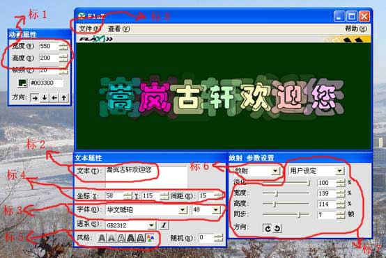 2.输入文字:在下边的文本框里输入你要制作的文字,(看图片1标2);