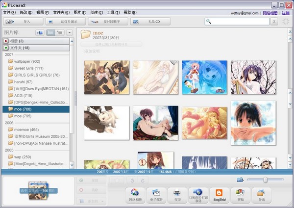 然后我们再来看一下Google的Picasa2。这也是一个广告攻势强啊的的软件,而他的广告价格和FF是一样的。好在国内目前还没有像FF那么泛滥(不过也差不多了)。先不管这些,让我们来看看软件本身吧。